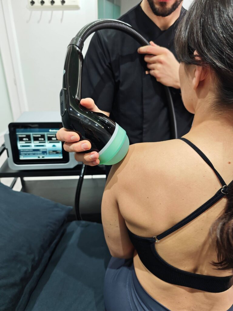 Técnica no invasiva que utiliza impulsos mecánicos para estimular la regeneración de los tejidos dañados y reducir el dolor, especialmente eficaz en tendinopatías, fascitis plantar, calcificaciones y dolor musculoesquelético crónico. Favorece la regeneración, mejora la vascularización y contribuye a reducir el dolor, acelerando la recuperación funcional.